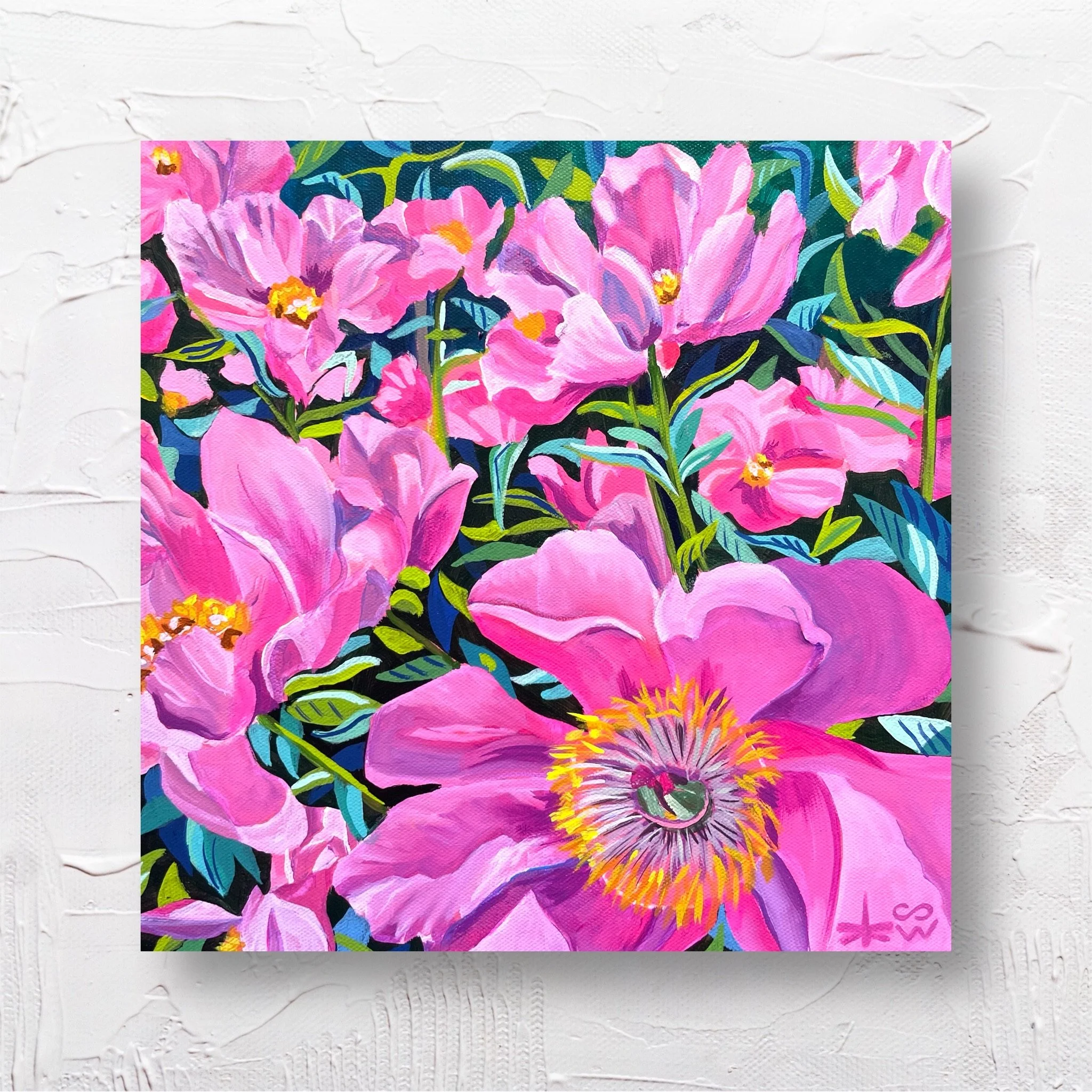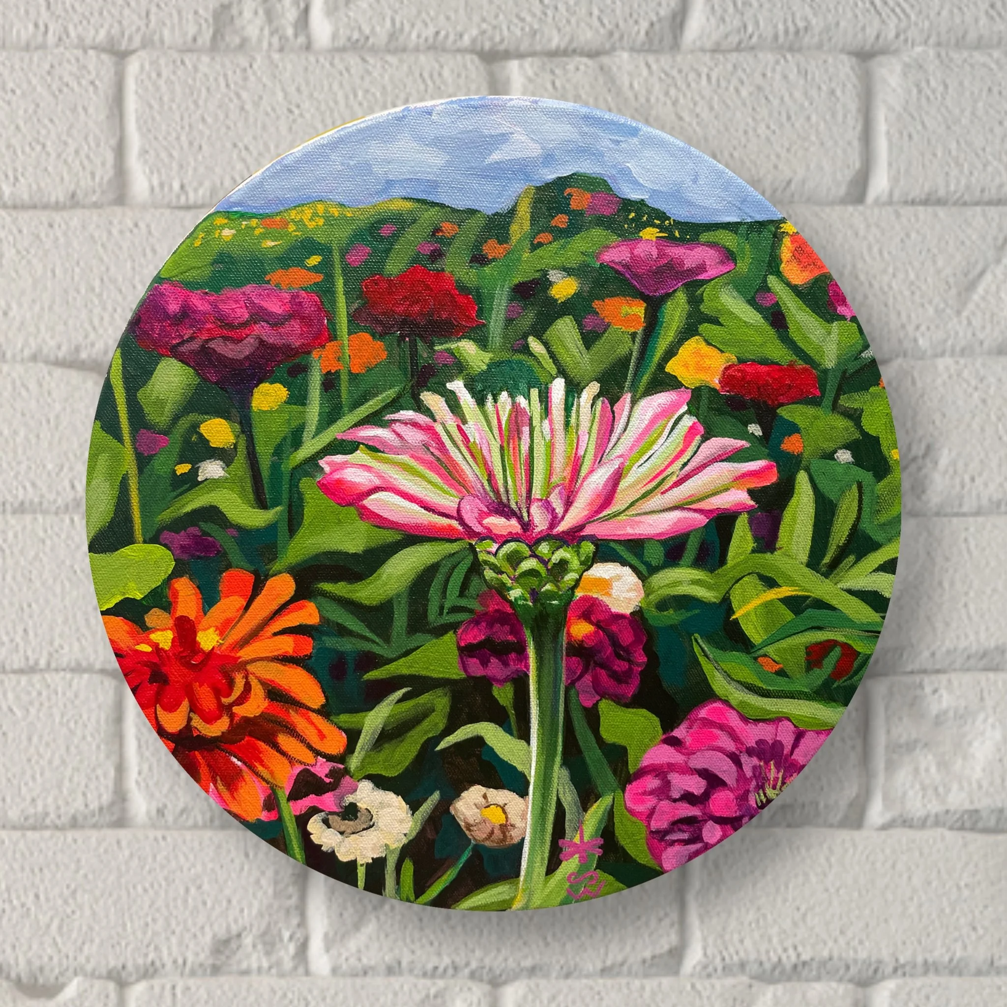 This painting of a field of bright zinnias was the 5th annual Willow fundraiser for St. Jude. It was a 12” round painting on canvas, that was given away in July of 2023. This painting raised a total of $2200 for St. Jude Children’s Research Hospital. The Willow fundraiser takes place in July each year in memory of a precious girl named Willow. Currently, the Willow fundraiser has raised a combined total of $7605 for St. Jude Children’s Research hospital.