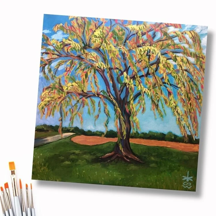 This colorful willow tree against blue skies, was the painting for the 3rd annual Willow fundraiser. It measured 16x16 inches and was created on gallery edge canvas. It was given away in 2021 and raised a total of $1375 for St. Jude Children’s Research Hospital.