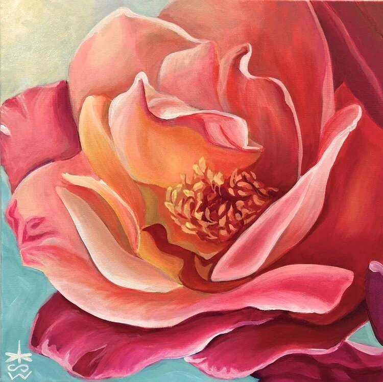 This lush blooming rose, in sunset hues, was the painting for the 2nd annual Willow fundraiser. It measured 16x16 inches and was created on gallery edge canvas. It was given away in 2020 and raised a total of $1270 for St. Jude Children’s Research Hospital.